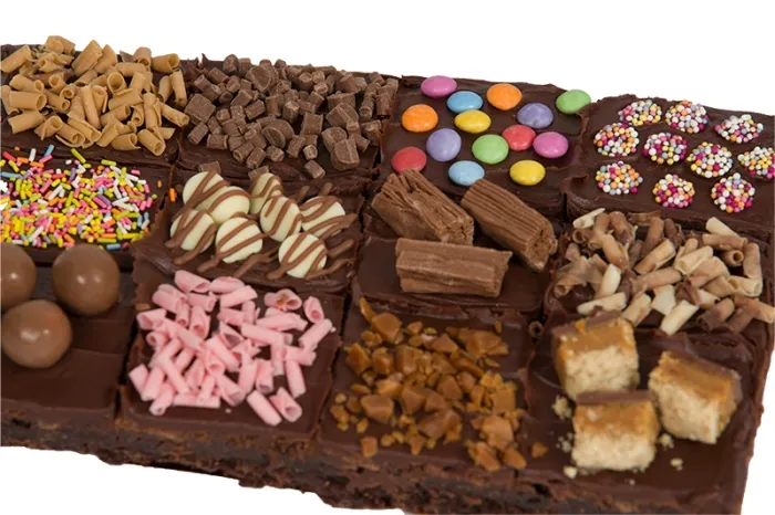 What could be more delightful than receiving a delicious selection of chewy fudge brownie squares. Toppings include Mini Smarties, Flakes, Choc Buttons, Jazzies, Maltesers and Caramel Shortcake to name a few.