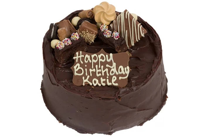 Give the chocoholic and biscuit lover in your life the ultimate in cake heaven. Our best selling Cheeky Chocolate Fudge Cake is made from rich chocolate sponge with lashings of thick chocolate frosting and is now available with the inclusion of Mini Sweet Treats. Toppings include Mini Oreos, Mini Chocolate Meringue, Brownie Pieces, Belgian Chocolates and more. Each cake is then finished with a personalised message on a chocolate plaque with your own edible message. Serving between 8 and 12 people this makes a great celebration cake.
